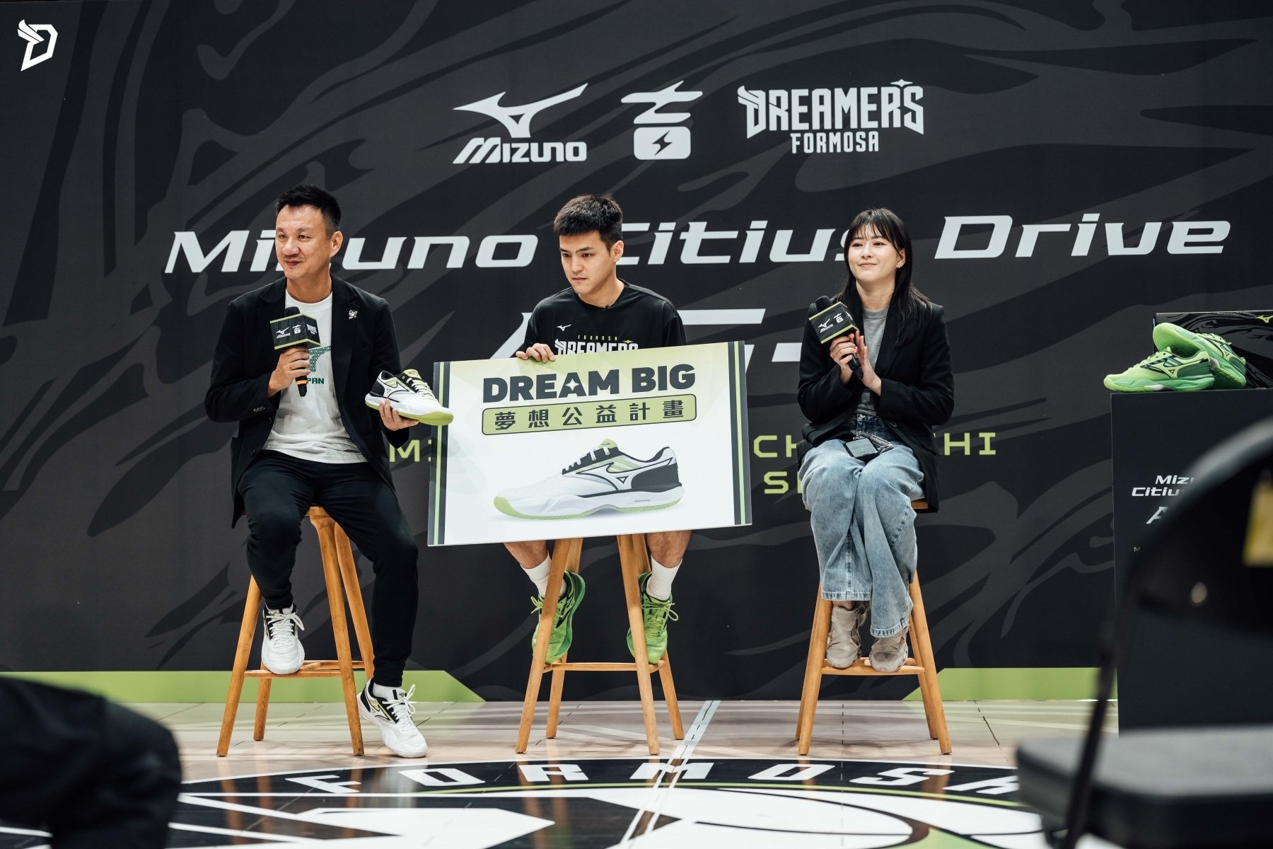 發布會現場也宣布夢想公益計劃,夢想家、MIZUNO 以及阿吉將共同捐贈 1,000 雙球鞋,透過林俊吉親自陸續回饋校園,為熱愛籃球的學生們送出最實際的助攻,以行動傳遞對基層籃球的支持與關懷。
